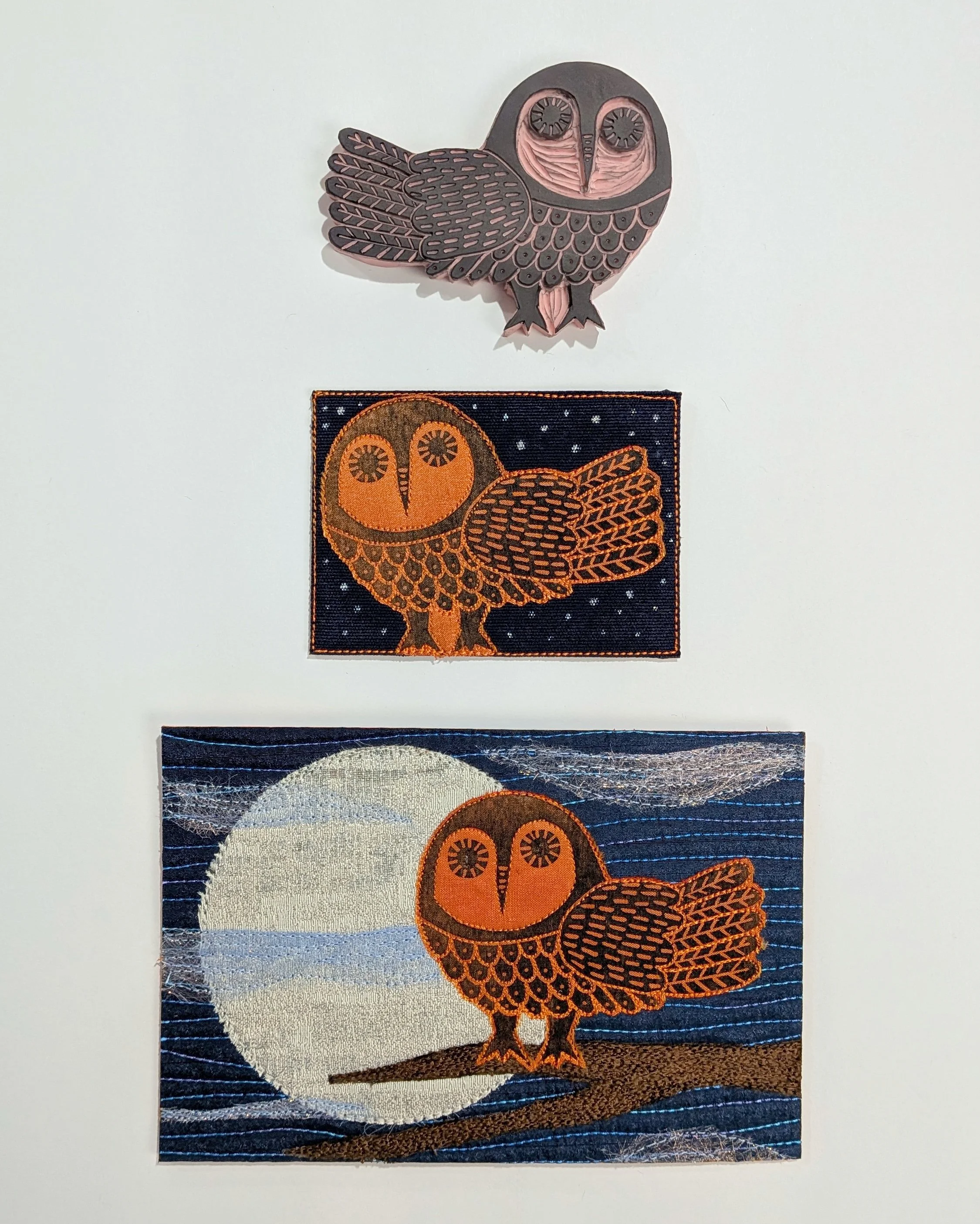 2.5” x 3.5” Artist Trading Cards made for Project Quilting’s 17.5 My Complements challenge and 6” x 4” reversible postcard made for Fiber Fix Fam’s March 2026 prompt.